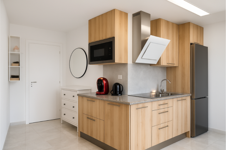 El menaje es completo, moderno y está perfectamente higienizado y colocado, asegurando una experiencia culinaria sin esfuerzo. Su distribución funcional te permite cocinar sin aislarte del resto de la estancia, manteniendo la conversación y el ambiente fluido.