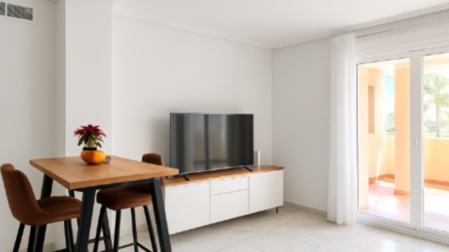 Sumérgete en la comodidad de nuestra cocina abierta, donde el diseño se une a la comodidad. Dispone de todo el equipamiento necesario para que te sientas como en casa: frigorífico, placa de inducción, campana, lavadora y lavavajillas, todos ellos de primeras marcas que garantizan un rendimiento superior.