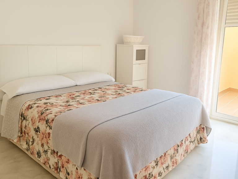 El sistema de persianas permite un oscurecimiento total para garantizar un sueño reparador. Un espacio funcional y nuevo, pensado para quienes buscan confort y una ubicación privilegiada frente al mar Mediterráneo.