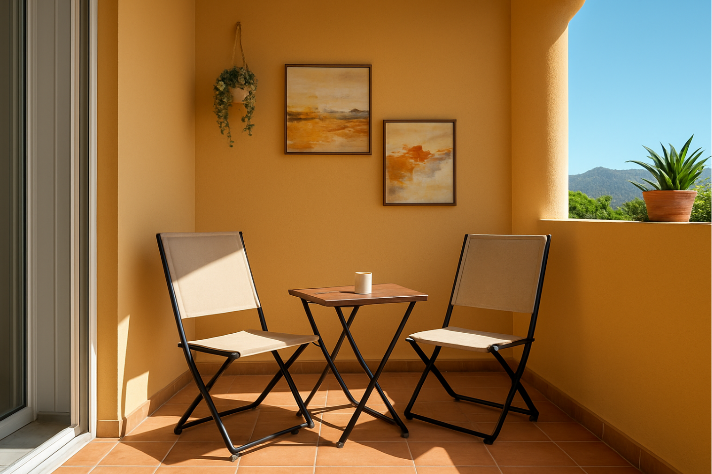 Zona de Comedor Exterior: Equipada con una mesa y sillas, es el lugar ideal para compartir desayunos, comidas y cenas inolvidables, sintiendo la brisa marina.